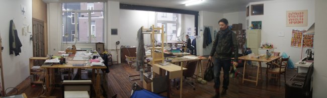 Nous voilà dans notre nouvel atelier... Avec Sacha Goerg, Sylvain Savoia, Pierre Maurel, Noémie Marsily, Wauter Mannaert, Judith Vandenistendael, Eva Hilhorst et Barbara Roosen.