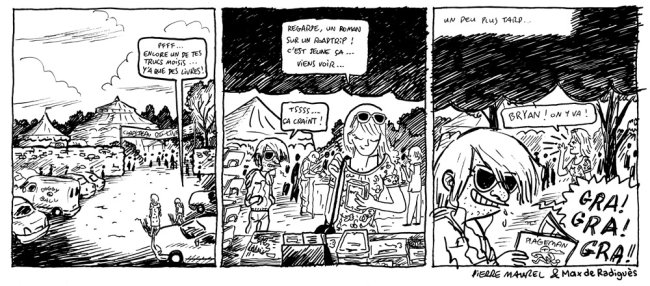 Après 10 jours d’atelier dans les école de Carcassonne, Pierre et moi sommes descendu sur Béziers pour rejoindre les amis de 6 pieds sous Terre. Missionnaires de la bande dessinée de qualité, on y a fait encore des ateliers autour du Fanzine... ci dessous un strip de dernière minute dessinée à (…)