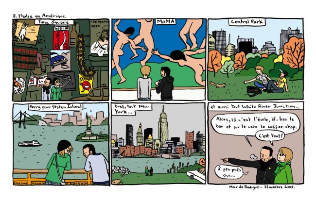 Je suis avec Sacha Goerg à White River Junction. On a donné une petite lecture à l’école sur l’employé du Moi, on a manger des pancakes et on a surtout fait des sessions intenses de dessin... On remonte demain rejoindre nos amis Montréalais et Alex de Moté pour une dédicace à la librairie (…)