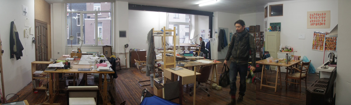 Nous voilà dans notre nouvel atelier... Avec Sacha Goerg, Sylvain Savoia, Pierre Maurel, Noémie Marsily, Wauter Mannaert, Judith Vandenistendael, Eva Hilhorst et Barbara Roosen.