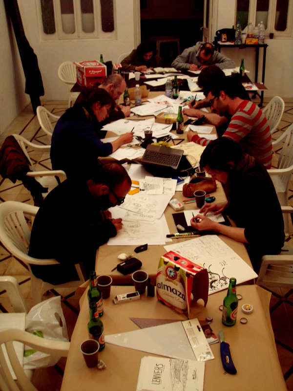 – LE LIBAN où on est parti avec les employé du Moi Stéphane Noël, Sacha Goerg, Noémie Marsily et Joanna Lorho pour retrouvé nos amis de Samandal. Pendant 12 jours, on a arpenté le Liban en long et en large pour ce retrouver tout les soirs à Beyrouth à dessiner une histoire de 8 pages à 4 mains belgo/libanaise. Chacun avait sont personnage qu’il faisait évolué au fur et à mesure de la semaine en fonction des lieux visité la journée et des rencontres avec les personnages des autres. C’est pas super clair écrit comme ça mais au final 16 fanzines de 8 pages ont été réalisé. On les mettre très bientôt en ligne sur un super nouveau site secret (le nom commence par 8 et termine par P).